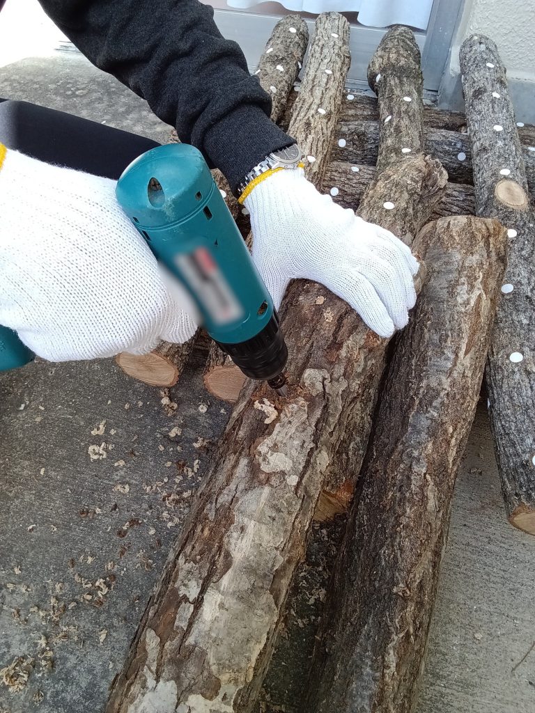2月19日、種駒の打ち込みを行いました。これから合計14本のホダ木を育てていきます★